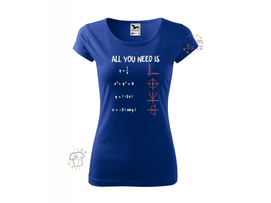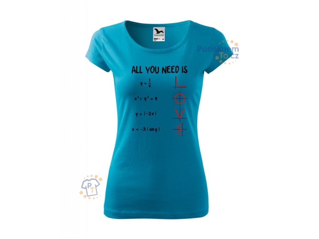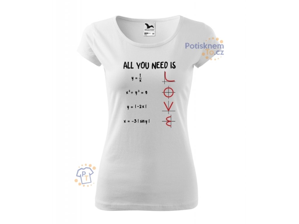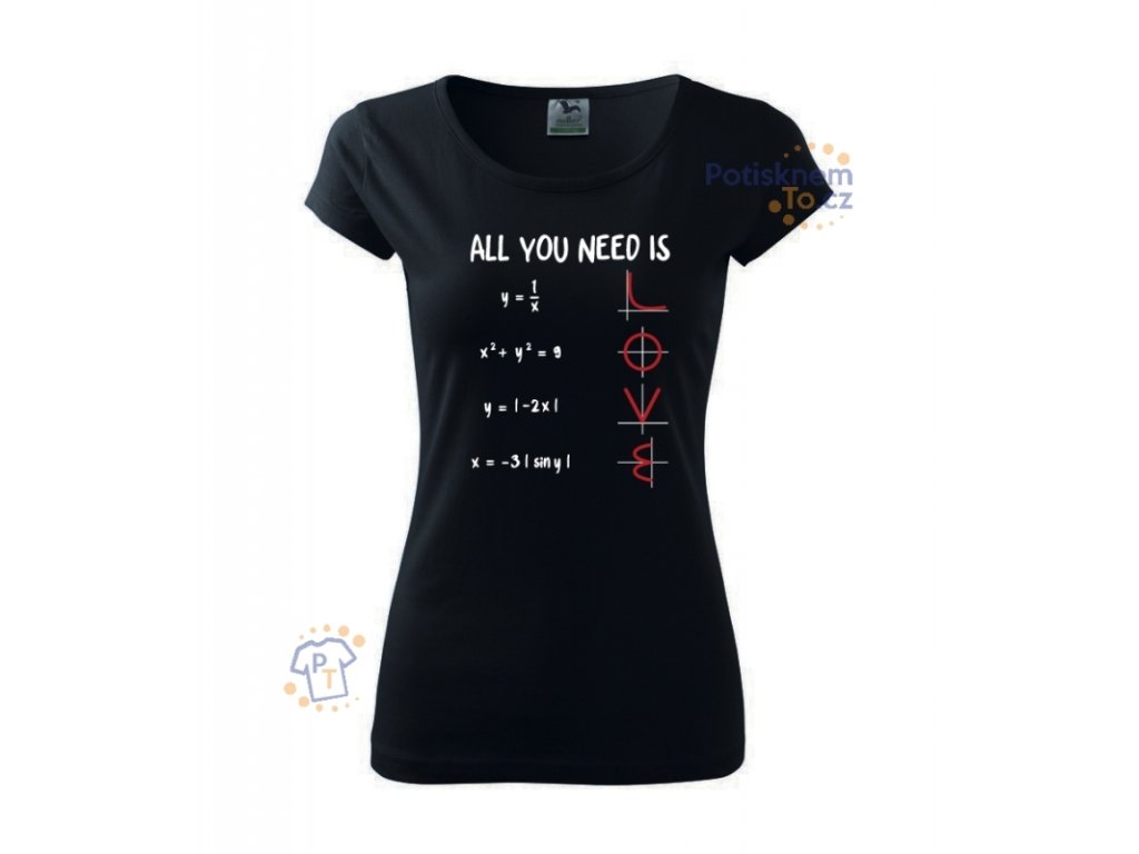 Dámské triko s potiskem All you need is love. Matematickým křívkám to ještě nikdy tolik neslušelo a vzorečky konečně dávají smysl.