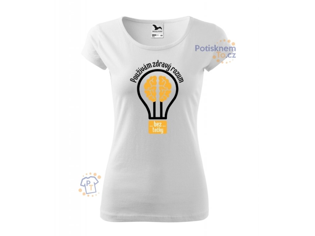 Dámské triko s potiskem Používám zdravý rozum ... bez tečky. Anti-covidové triko na volné téma. :-) Pro každého, kdo už má dost nekonečných omezení a nařízení.