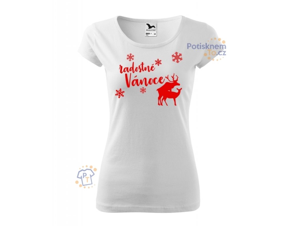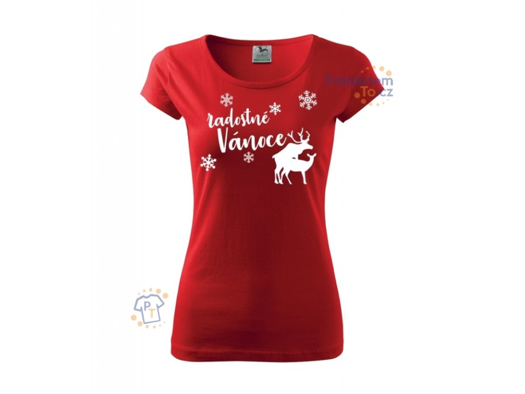Dámské triko s veselým a originálním potiskem. Kopulující jeleni pobaví na vánočním večírku, udělají radost obdarované pod stromečkem. Dostupná také verze trika v pánském střihu.