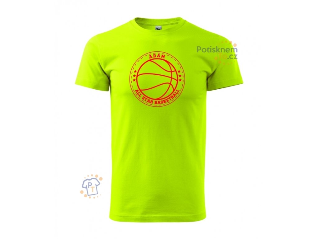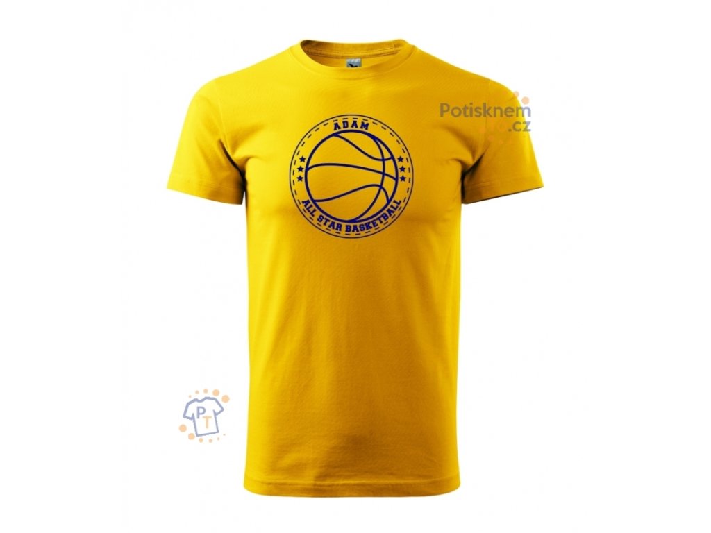 Dětské triko s potiskem All star basketball a navíc volbou vlastního jména dítěte. Přizpůsobte si toto tričko pro dítě, které ho bude nosit. Napište jméno dítěte do textového pole níže, uložte přizpůsopení a vložte hotové tričko do košíku.