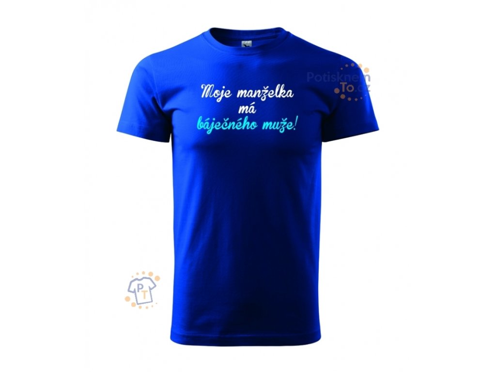 Triko v pánském střihu s potiskem Moje manželka má báječného muže, je hezkým dárkem pro manžela k výročí, Valentýnu či podobným příležitostem. Nabízíme také variantu v dámském střihu, aby i muži měli snadnější cestu k originálnímu dárku.